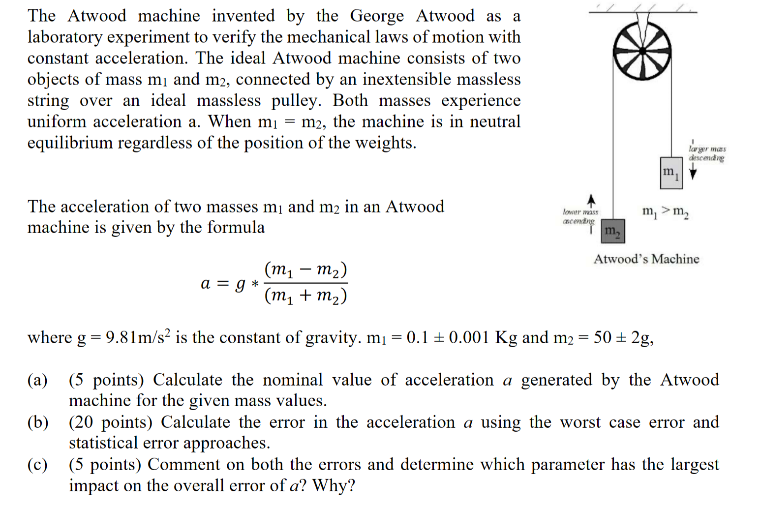 a = g((m1 – m2)/(m1 + m2))